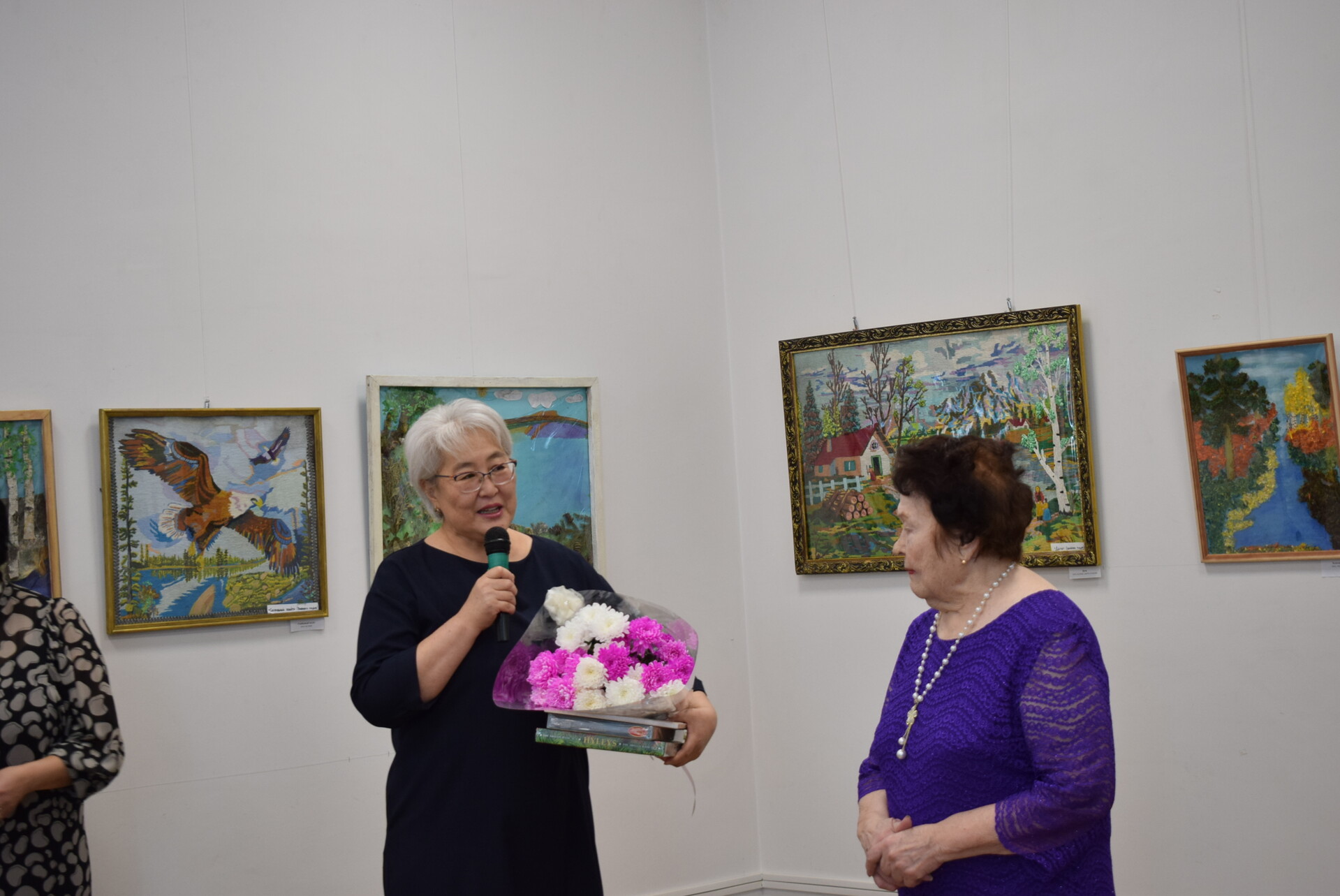 и дала слово Афталине Гармаевне Арзаевой, директору музея. В своем приветственном выступлении она отметила многолетнее сотрудничество с Коневой В.Ф., которое выражалось в красочных, оригинальных выставках, предоставляемых к экспонированию в залах Национального музея.