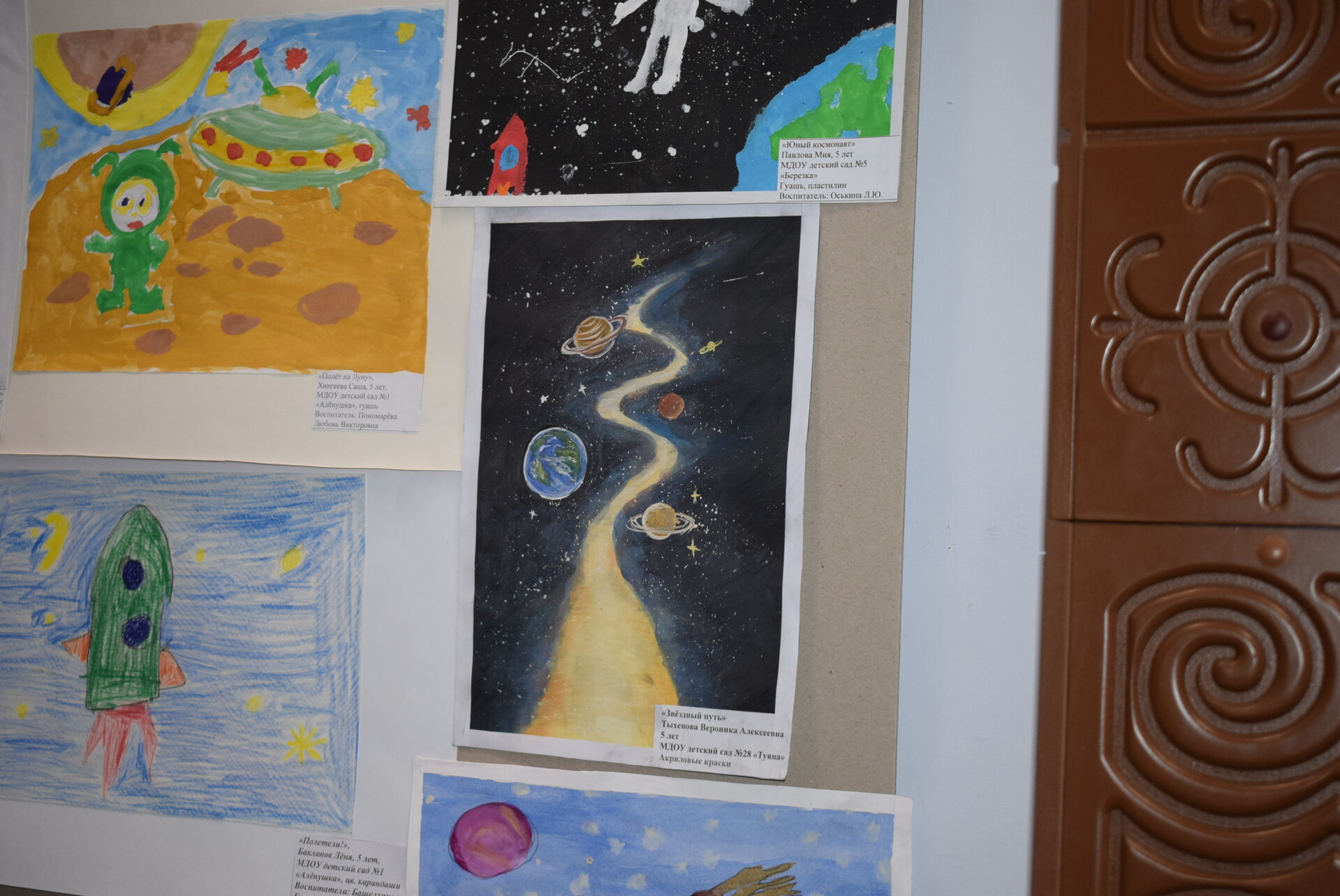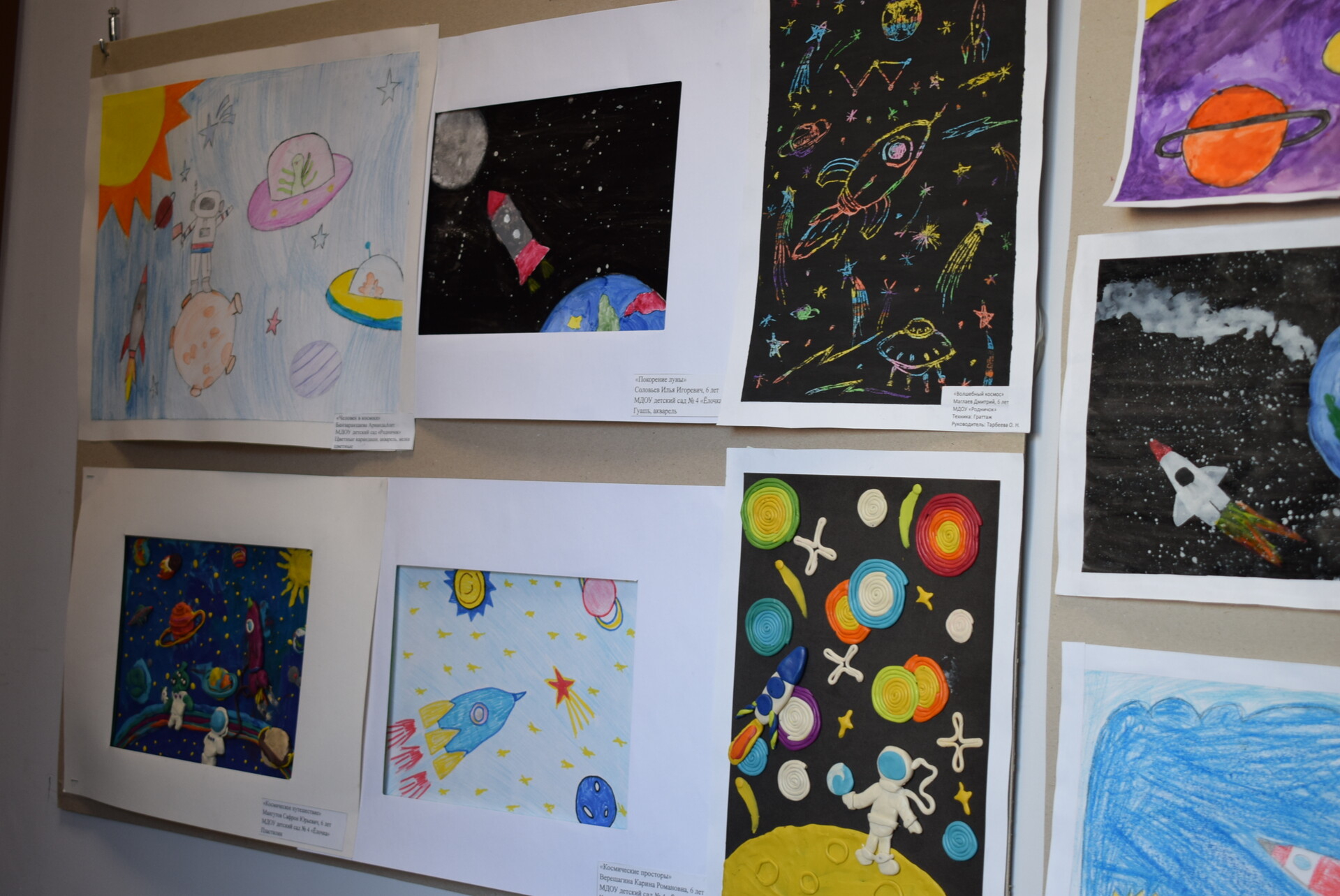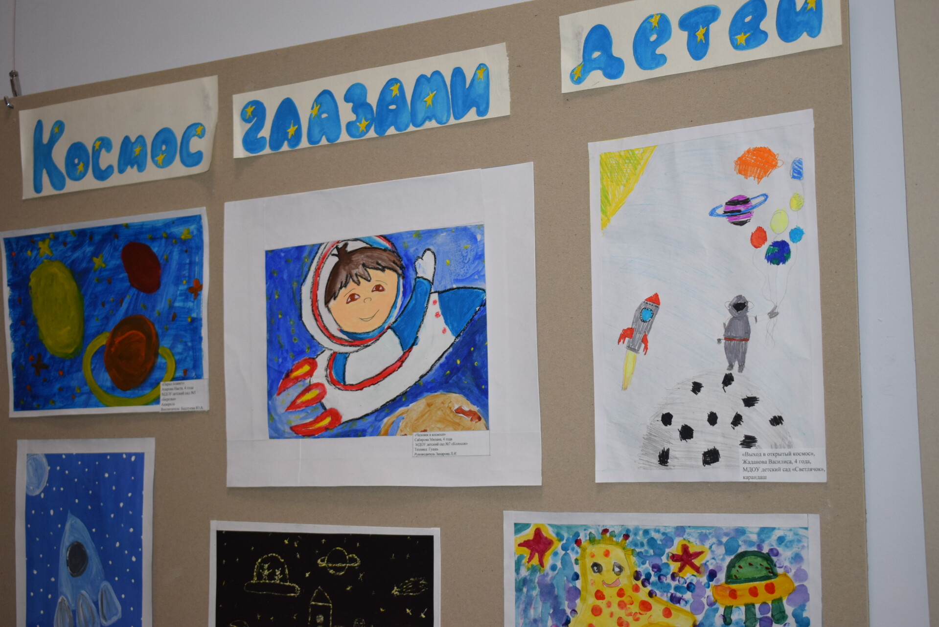 Дети могут представили работы, выполненные совместно со своими родителями и воспитателями, воплощенные представления о космосе, его освоение человеком с использованием фломастеров, мелков, акриловых красок, акварели, гуаши, подручных материалов.